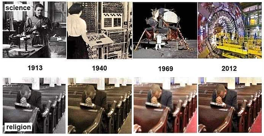 If I’ve noticed anything over the years of interacting with atheist people (who kindly provided this meme), it’s that many of them love to set up “religion” and science as competing entities. And, of course, science always wins in their worldview.